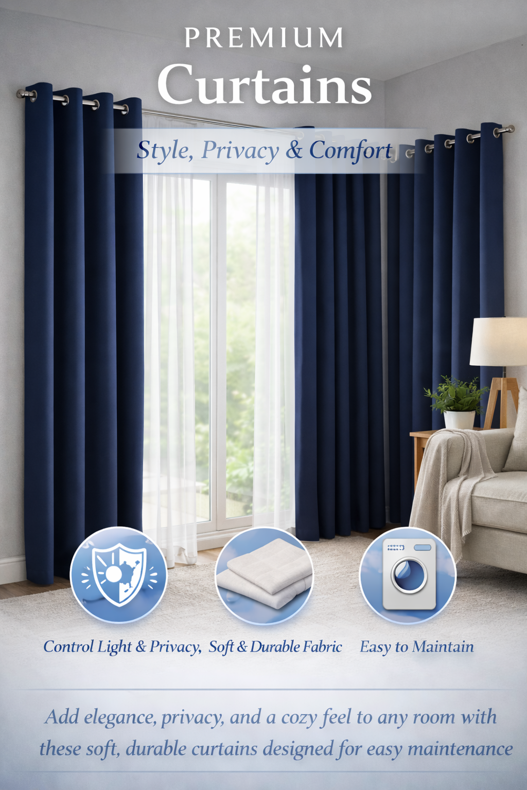 Upgrade your space with these soft, durable curtains designed to control light, enhance privacy, and add a touch of elegance to any room. Easy to maintain and beautifully draped, they are perfect for living rooms, bedrooms, and AC spaces.