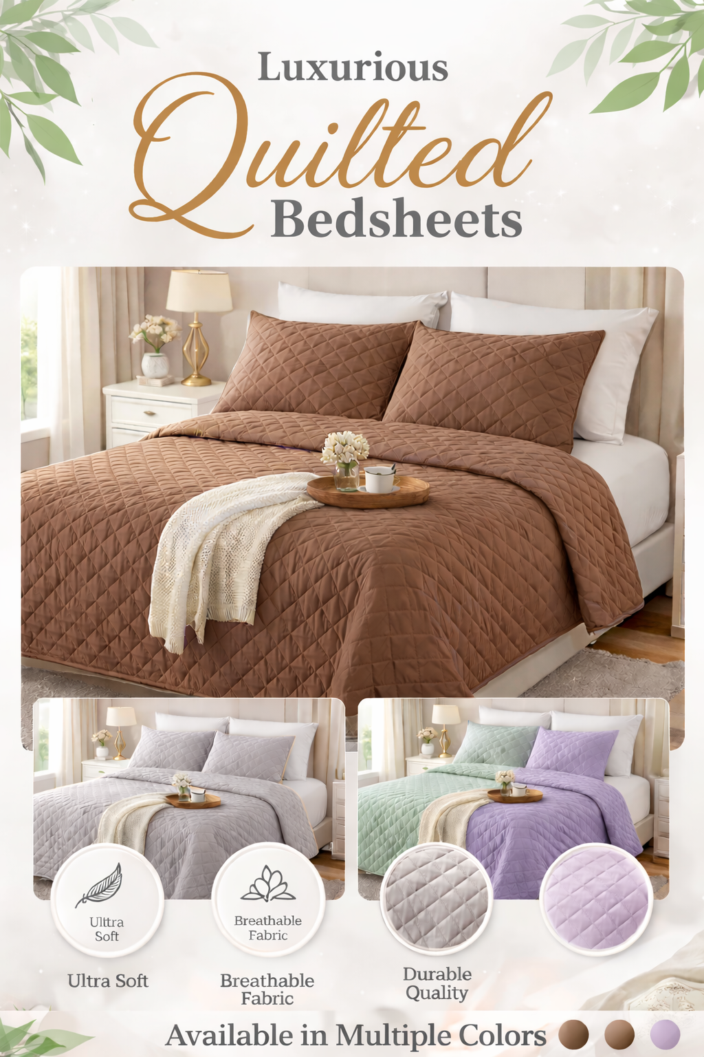 A COMFYA five-layer quilted bedsheet is thoughtfully designed to deliver premium all-season comfort for every age group, blending softness, breathability, and cozy warmth in perfect balance. Its advanced five-layer construction features a smooth, skin-friendly surface, plush cushioning layers, and a breathable temperature-regulating core that keeps you cool in summer and comfortably warm in winter without feeling bulky. Lightweight yet luxuriously soft, it provides gentle support for kids, adults, and seniors alike, while the durable base ensures a secure fit and long-lasting performance. With an elegant quilted finish and easy maintenance, COMFYA brings everyday comfort, restful sleep, and year-round coziness into every home.