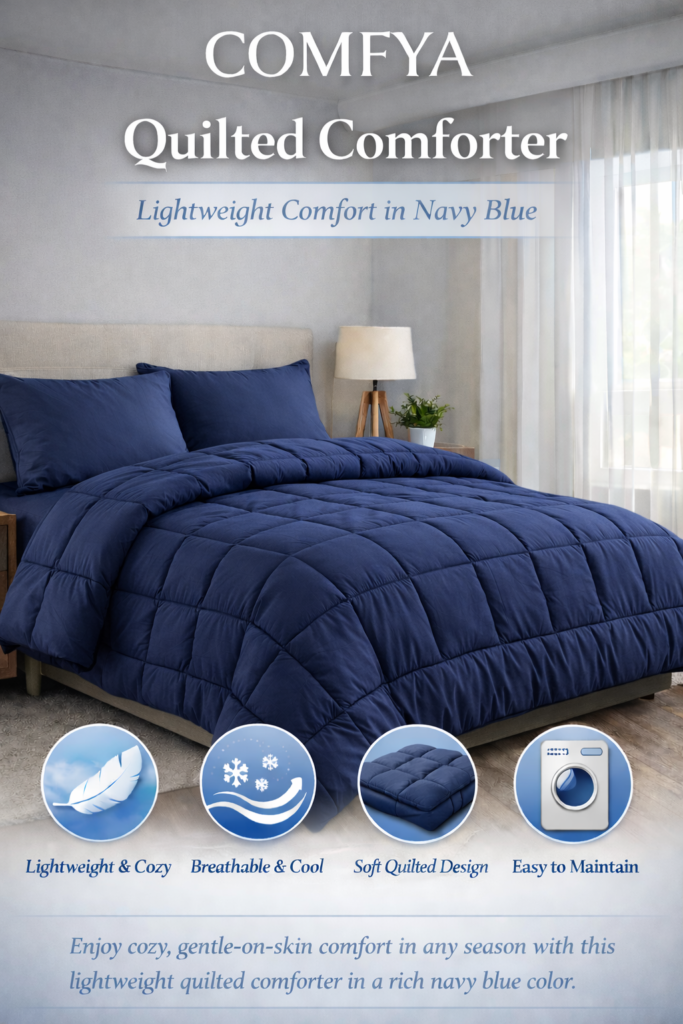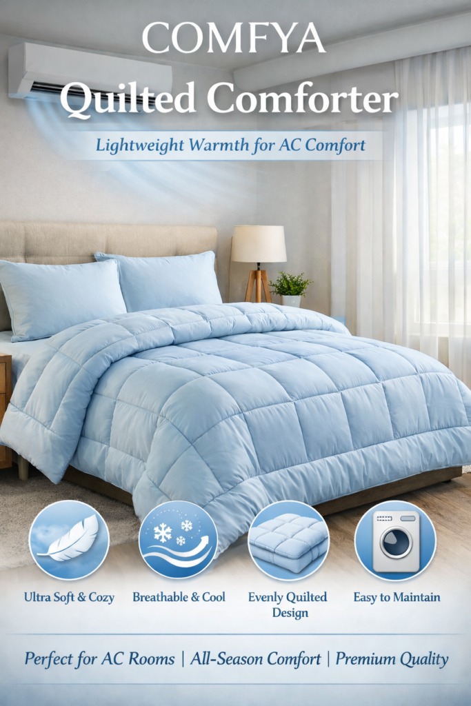 Experience cozy luxury with the COMFYA 5-layer quilted comforter, designed for use in air-conditioned rooms. Perfectly balanced for softness and warmth, this comforter keeps you comfortable without overheating, making it ideal for year-round use.